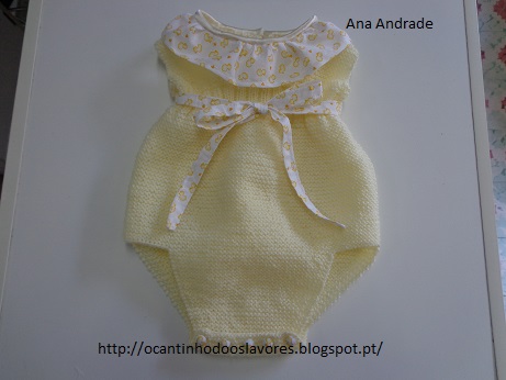 Fofo em tricot, com babados em algodão de fantasia e cintinho igual.